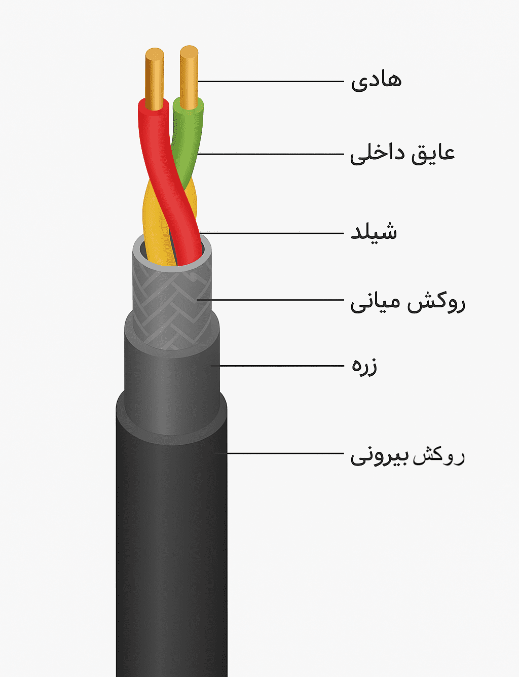 کابلهای Instrumentation معمولاً از بخشهای زیر تشکیل میشوند: